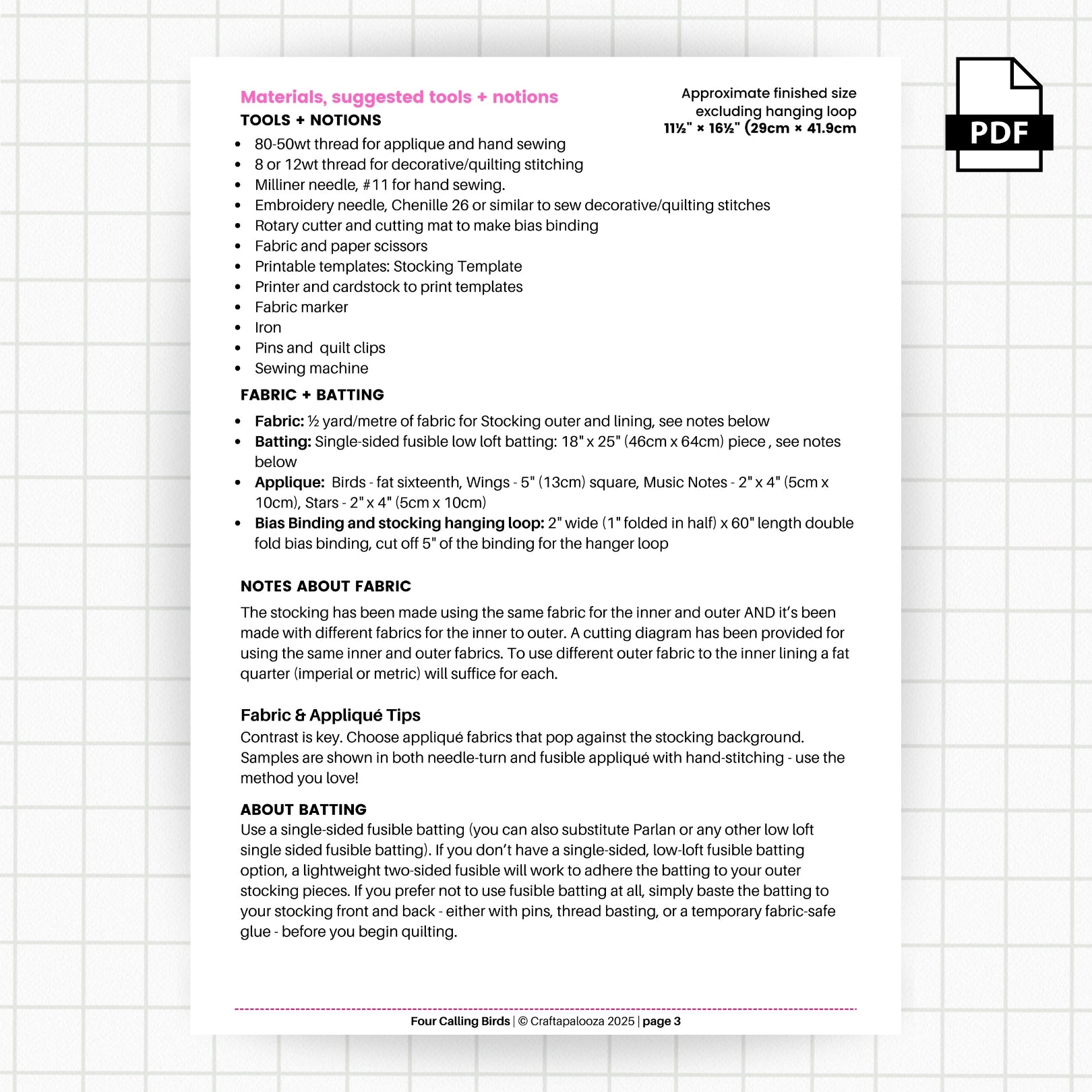 - Please do not share, resell or distribute the pattern. If a friend would like to make Four Calling Birds, send them to craftapalooza.com so they can purchase their own copy.